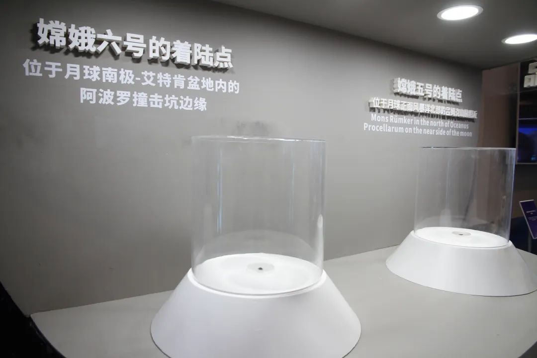 步入航天科普展区,序厅、空间技术、空间科学、空间应用、国际合作、航天公益、泰国专区等板块依次呈现。其中,嫦娥五号取回的月球正面月壤和嫦娥六号取回月球背面月壤样品同框展示,吸引了众多目光。嫦娥五号带回的月表年轻火山岩区样品与嫦娥六号取自月球南极-艾特肯盆地的古老月背样品并置,颜色、密度和颗粒来源的差异,激发着公众对月球演化奥秘的探索欲望。